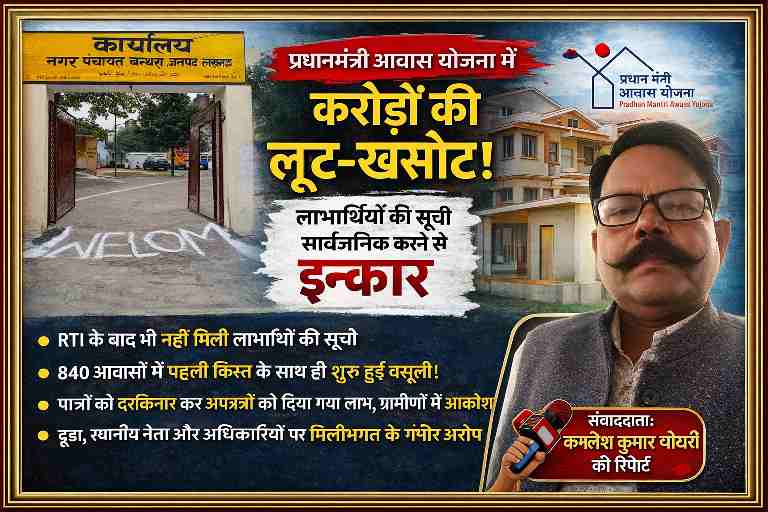 लखनऊ के बन्थरा नगर पंचायत से सामने आई यह खबर महज एक स्थानीय विवाद नहीं, बल्कि सरकारी योजनाओं की पारदर्शिता और जवाबदेही पर बड़ा सवाल खड़ा करती है। प्रधानमंत्री आवास योजना, जिसे आर्थिक रूप से कमजोर और जरूरतमंद परिवारों को पक्की छत उपलब्ध कराने के उद्देश्य से लागू किया गया, उसी योजना में अब गंभीर अनियमितताओं और भ्रष्टाचार के आरोप सामने आ रहे हैं। सवाल सीधा है—अगर सब कुछ पारदर्शी है, तो लाभार्थियों की सूची सार्वजनिक करने में हिचक क्यों?