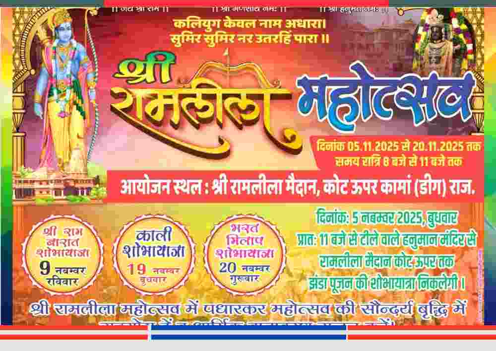 कामवन रामलीला समिति कामाँ द्वारा भव्य रामलीला महोत्सव 2025 का शुभारम्भ हो रहा है। यह आयोजन