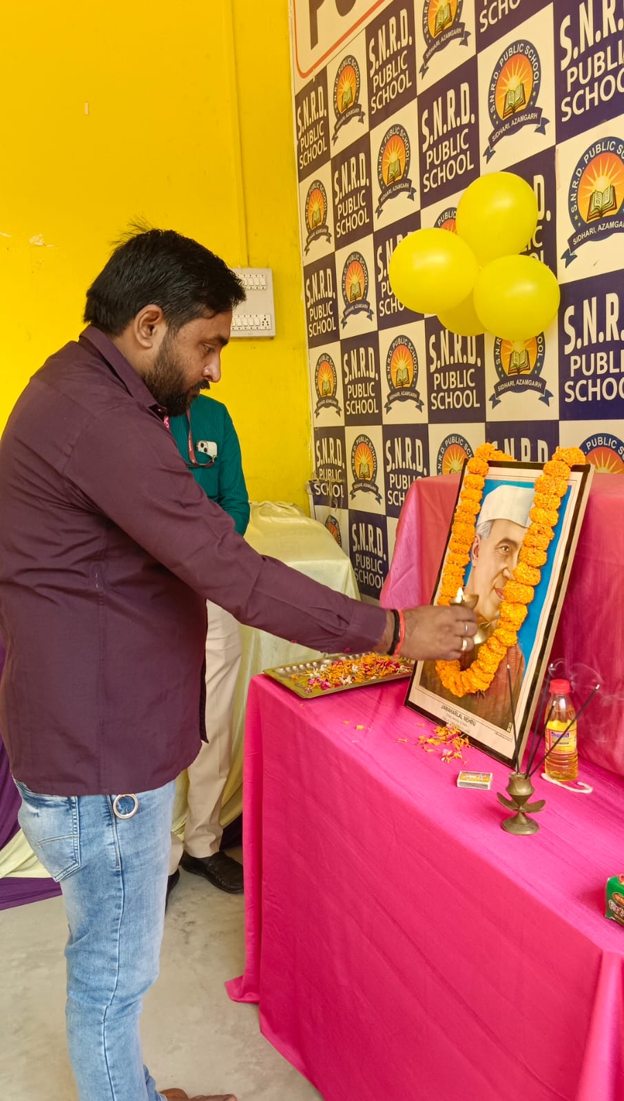 सिधारी स्थित S.N.R.D. पब्लिक स्कूल में 14 नवंबर को चाचा नेहरू के जन्मदिन को धूमधाम से मनाया गया। प्रबंधक श्री सत्यप्रकाश तिवारी और निदेशक शिवम तिवारी ने संयुक्त रूप से फीता काटकर एवं माल्यार्पण कर कार्यक्रम की शुरुआत की।