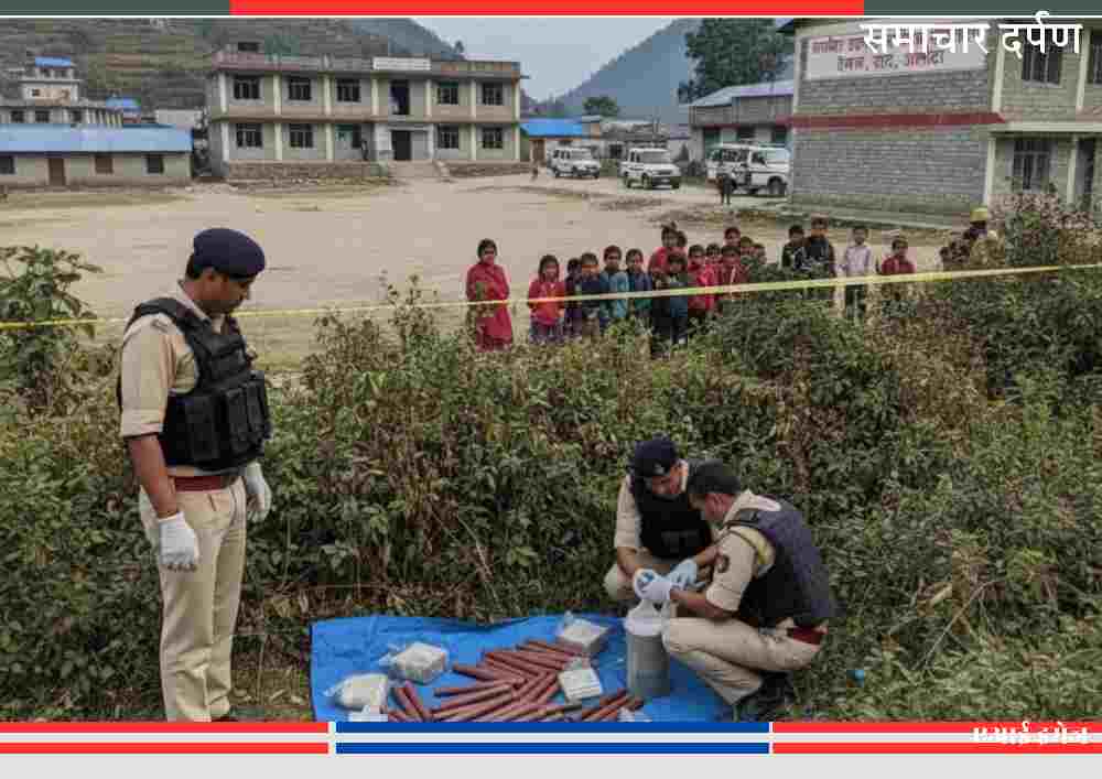 विस्फोटक सल्ट ब्लॉक के राजकीय उच्चतर माध्यमिक विद्यालय डभरा के पास झाड़ियों में मिला।