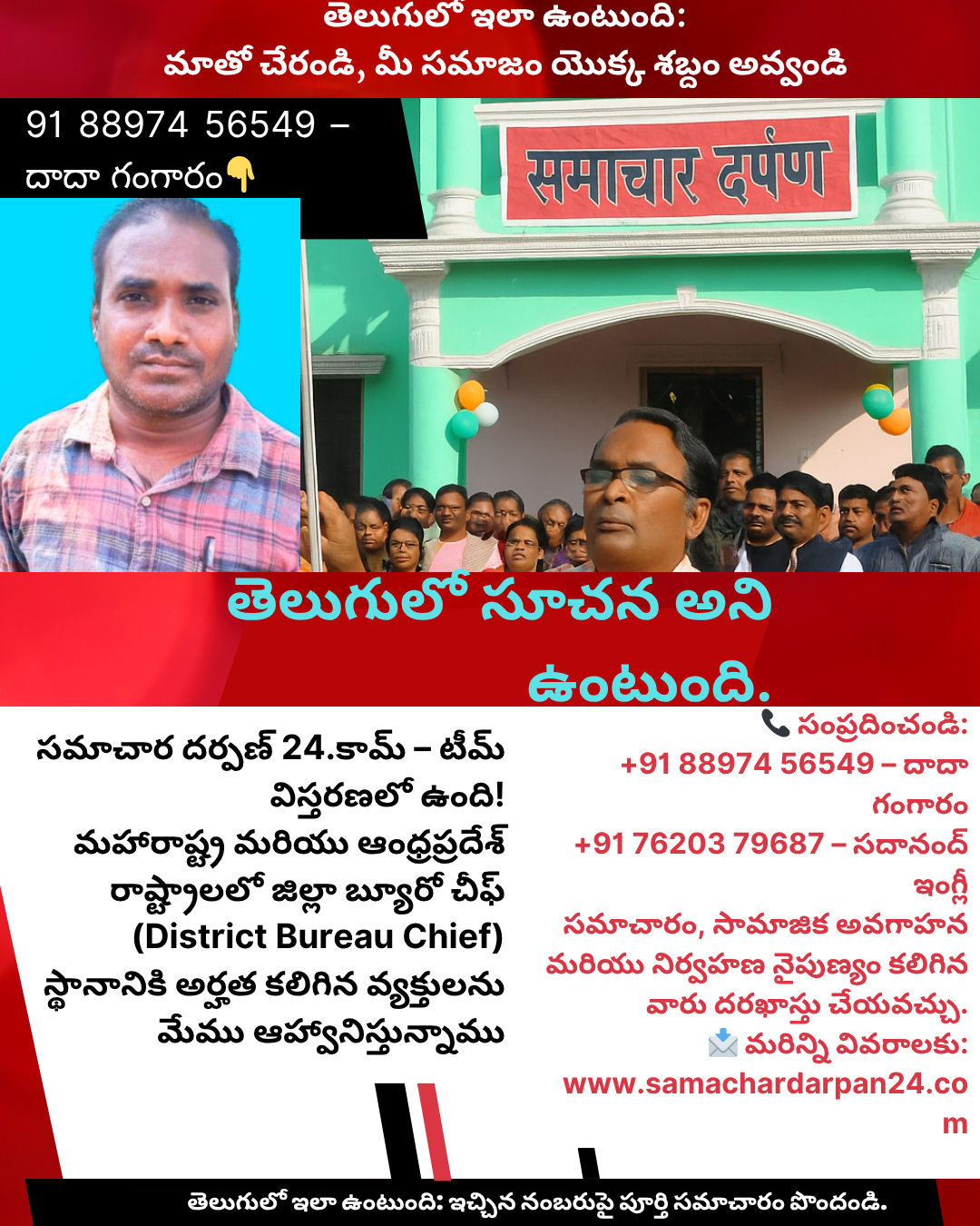 समाचार दर्पण 24 टीम जॉइनिंग पोस्टर – राजस्थान जिला ब्यूरो आमंत्रण