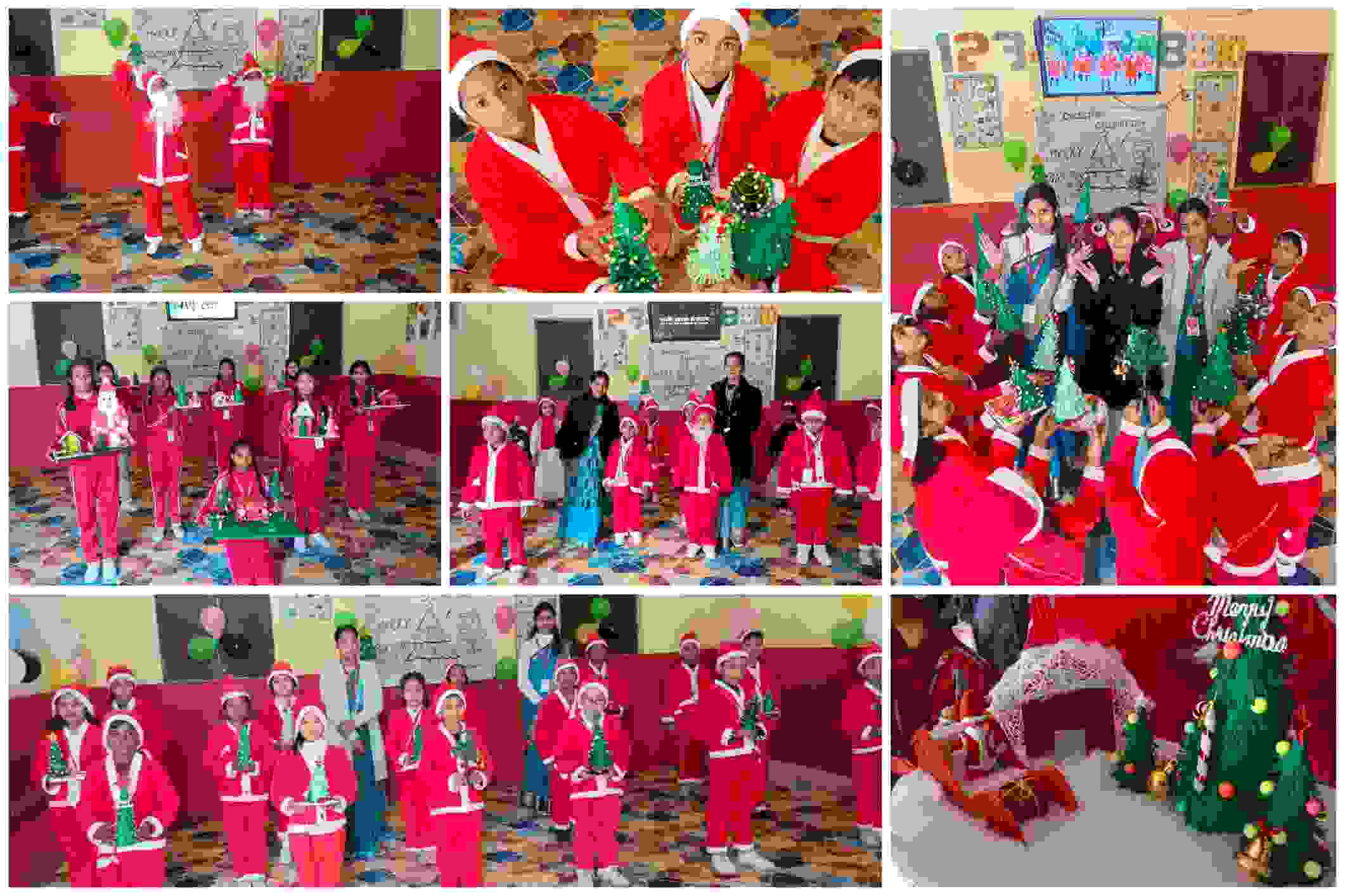 कक्षा के अनुसार तैयार किए गए चार्ट पेपर, चित्र और हस्तनिर्मित क्रिसमस ट्री बच्चों की रचनात्मकता का प्रमाण थे। किसी ने रंग-बिरंगे कागजों से क्रिसमस ट्री सजाया, तो किसी ने चार्ट पर ईसा मसीह के जन्म की कथा को चित्रों के माध्यम से प्रस्तुत किया। इन प्रस्तुतियों ने यह स्पष्ट कर दिया कि विद्यालय में शिक्षा केवल पुस्तकों तक सीमित नहीं, बल्कि बच्चों की कल्पनाशीलता और संवेदनशीलता को भी बराबर महत्व दिया जाता है।
