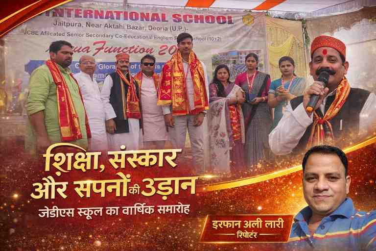 देवरिया के सोहनपुर क्षेत्र में स्थित जेडीएस इंटरनेशनल स्कूल का दसवां वार्षिक उत्सव इस बार केवल एक कार्यक्रम नहीं, बल्कि शिक्षा, संस्कार और प्रतिभा का ऐसा संगम बन गया, जिसने हर उपस्थित व्यक्ति को भावनात्मक रूप से जोड़ लिया। बनकटा थाना क्षेत्र के जैतपुरा में आयोजित इस कार्यक्रम में बच्चों ने अपनी प्रस्तुतियों से ऐसा माहौल बनाया कि पूरा परिसर उत्साह और ऊर्जा से भर उठा।